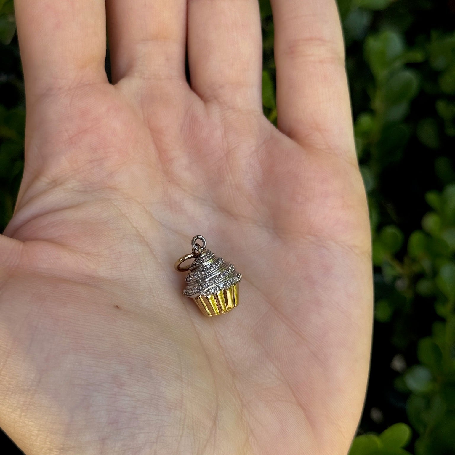 Diamond Cupcake Charm with Pave Diamond in 14K
