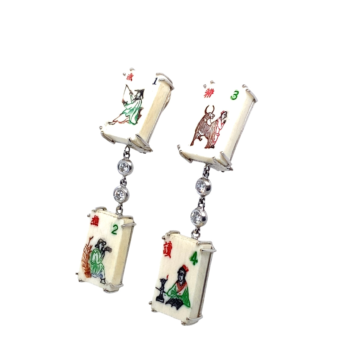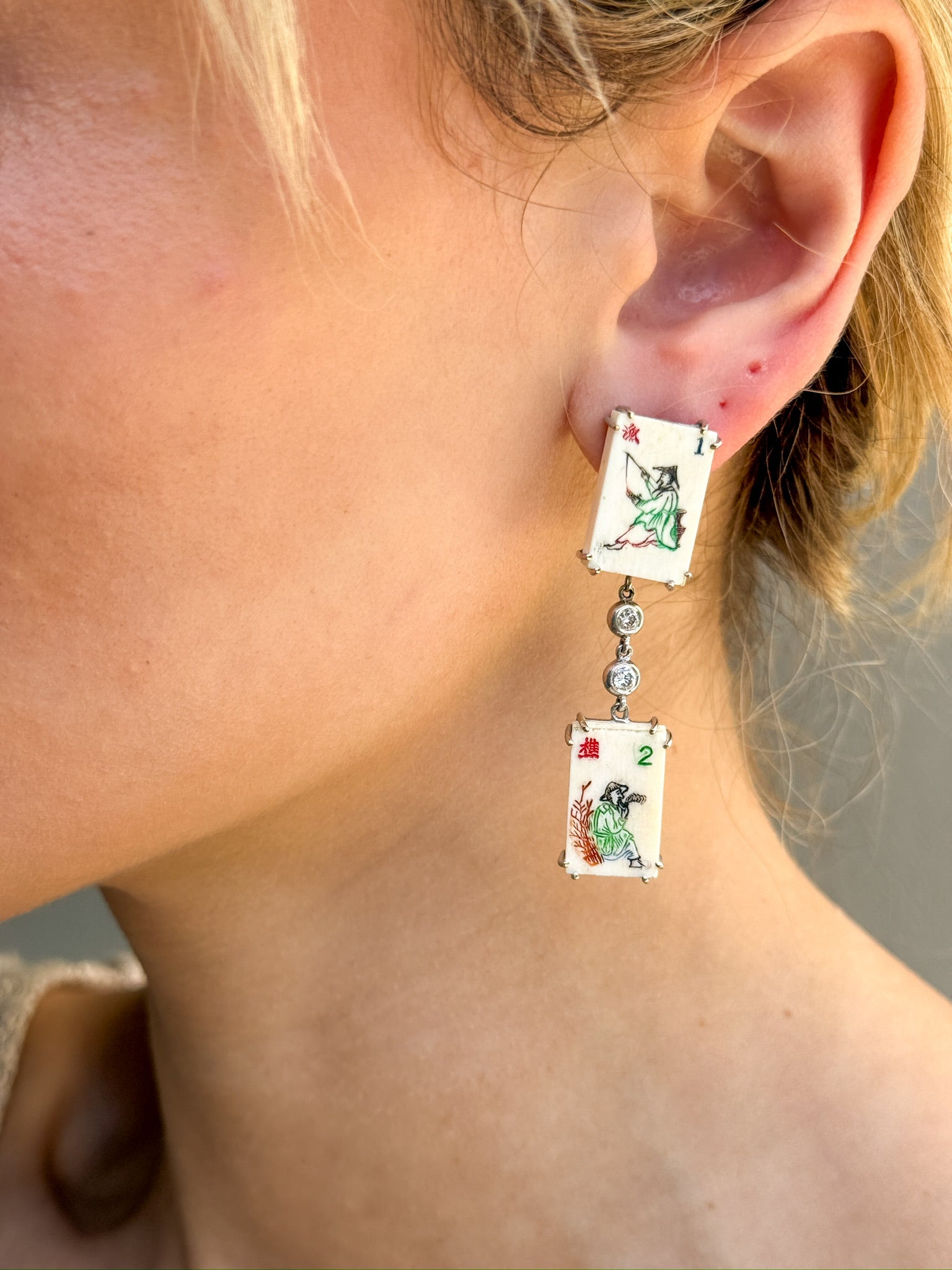 Mahjong Tile Earrings with Bezeled Diaminds in 14K