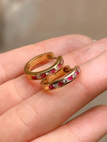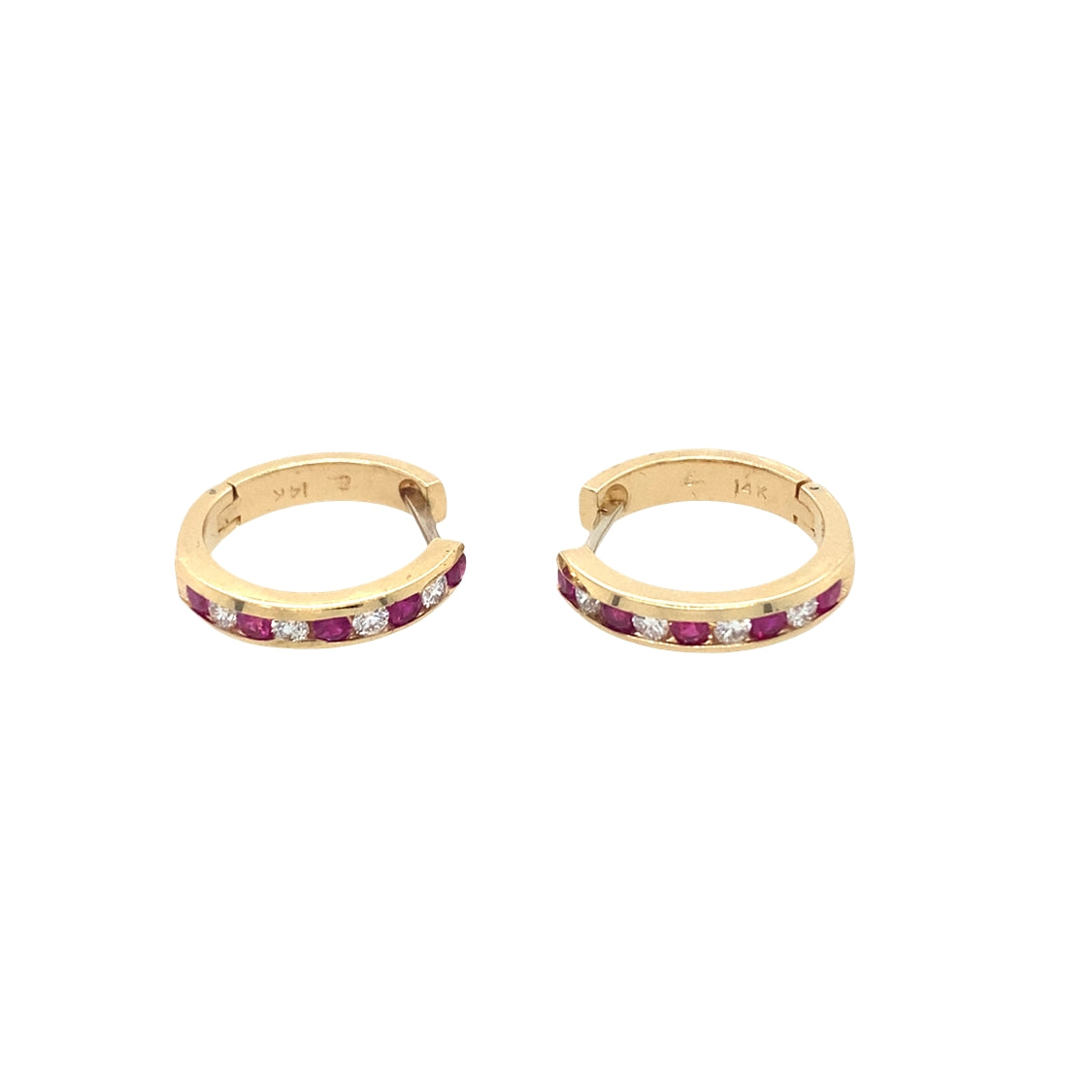 Vintage Ruby and Diamond Hoop Earrings in 14K
