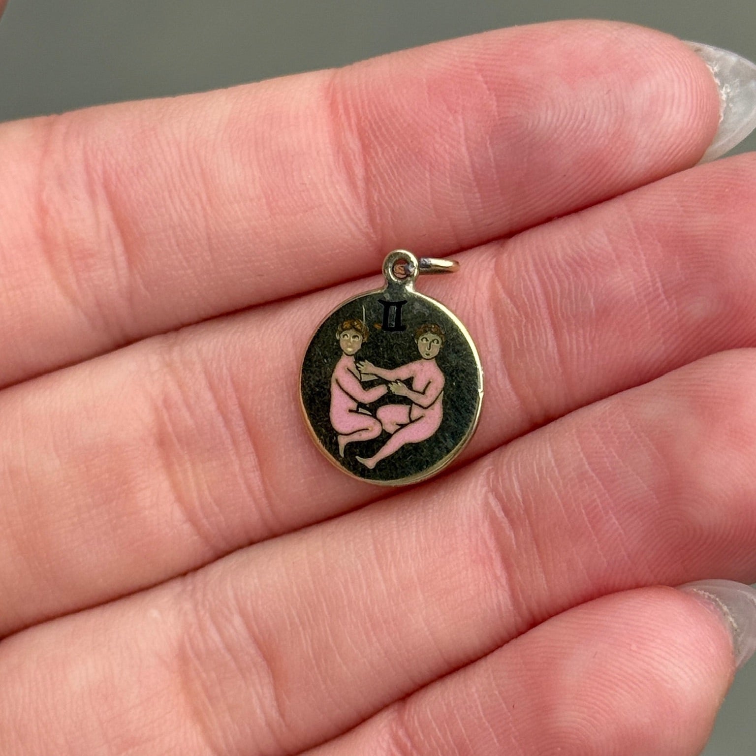 Vintage Gemini Zodiac Charm in 14K